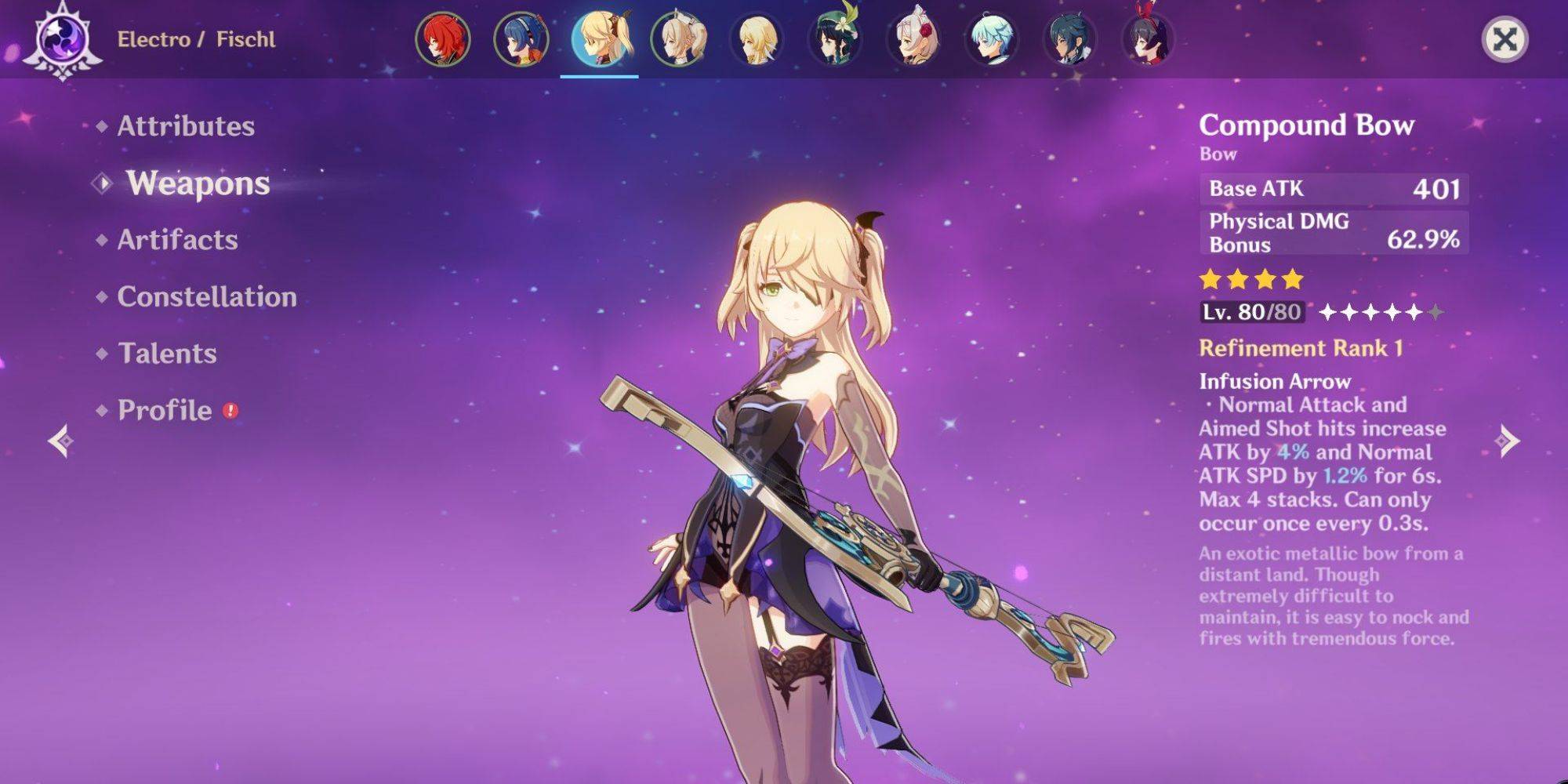 8 The Compound Bow Four Star. Charged Attack - Perform a more precise Aimed Shot with increased DMG. Doster on November 9 2021 at 11.